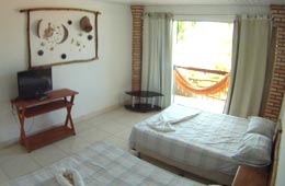 A Pousada Agua de Fuego possui 16 quartos com banheiro privado, situados no térreo e primeiro piso (com sacada individual e rede). Escolha a acomodação mais adequada ao seu estilo de hospedagem: individual, duplo, triplo ou quádruplo, ar-condicionado; Limpeza e conforto fazem sua estadia muito mais agradável.